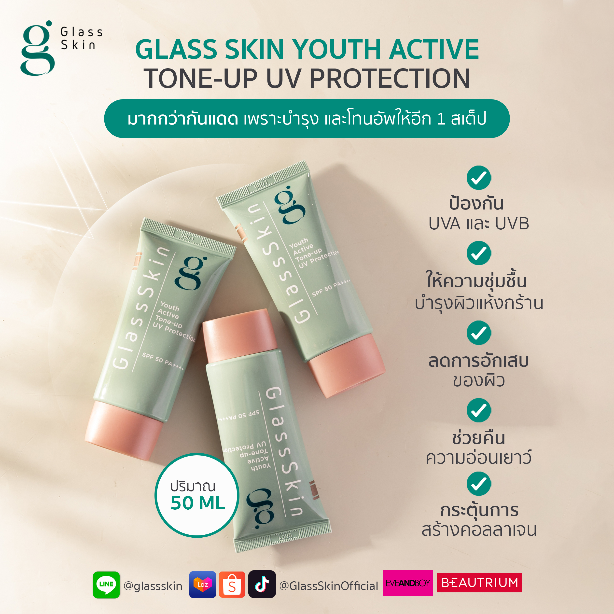 ปกป้องและปรับผิว: Glass Skin Youth Active Tone-Up SPF 50 PA++++